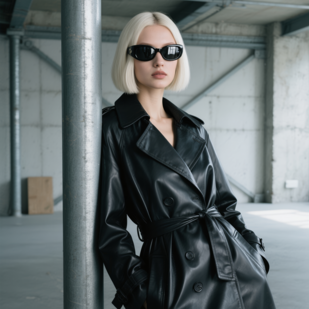 – Editorial portraits with models dressed in structured, professional silhouettes (coats, blazers, monochrome looks).